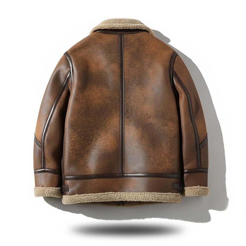 Faux Shearling Aviator Jacket – Vintage Biker Winter Coat