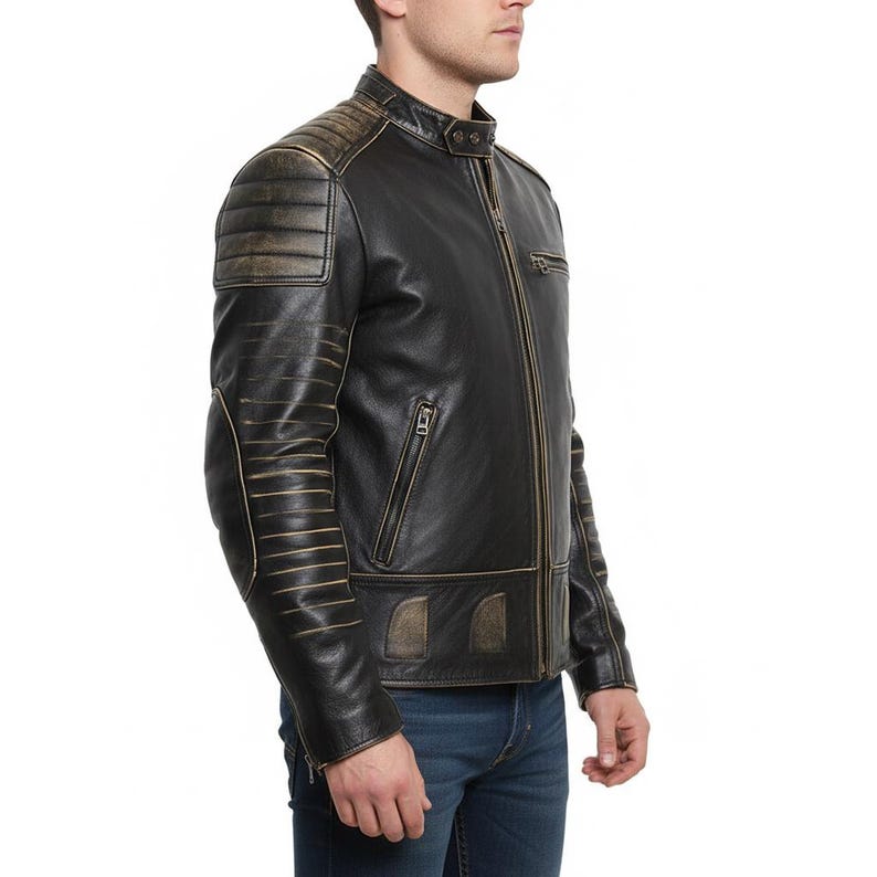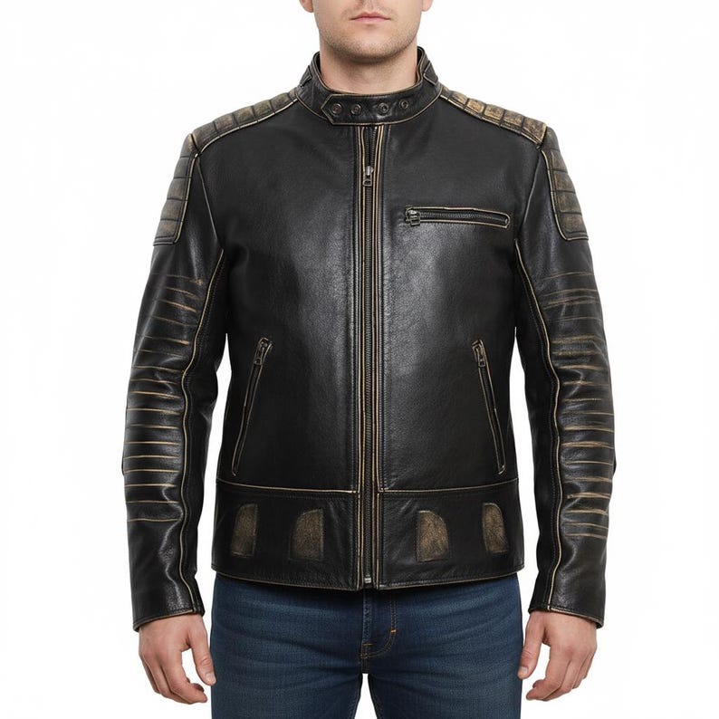 Designed with a modern slim fit, this stylish leather jacket provides a flattering silhouette while maintaining optimal comfort for both casual wear and motorcycle rides.