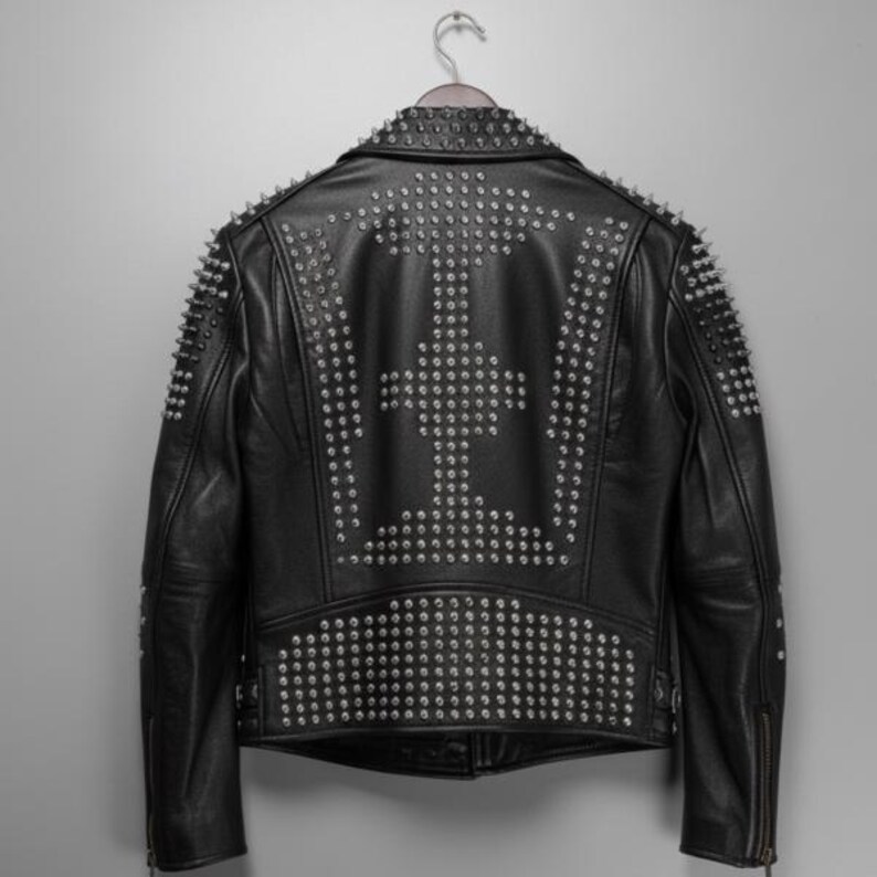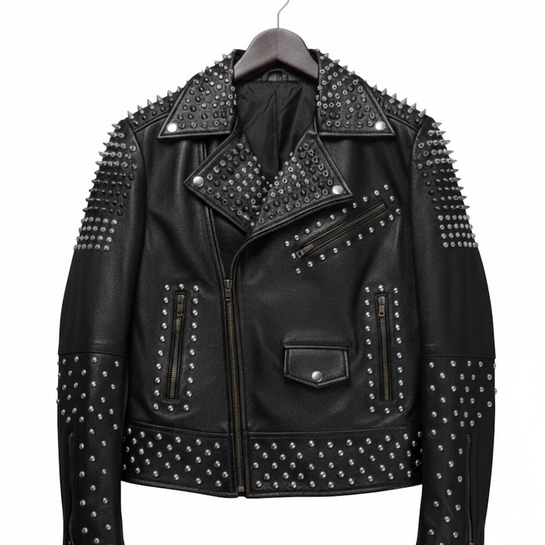 “⚡ Statement Design: Features silver stud detailing across shoulders, sleeves, and lapels for a fierce, standout look.