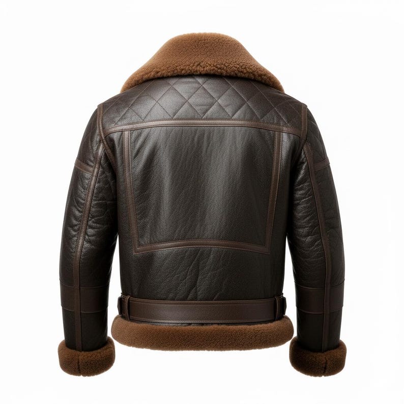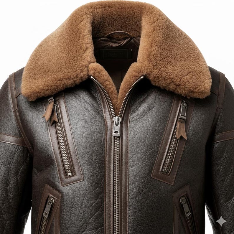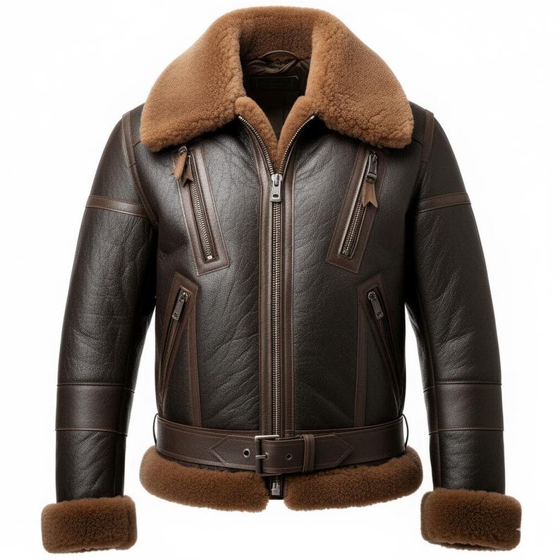 “Stay warm and stylish in this handcrafted brown shearling leather jacket, designed with a perfect balance of rugged aviator charm and luxurious comfort. Made from 100% genuine sheepskin leather, this jacket features a soft shearling interior, turn-down fur collar, and belted waist for a classic pilot look.