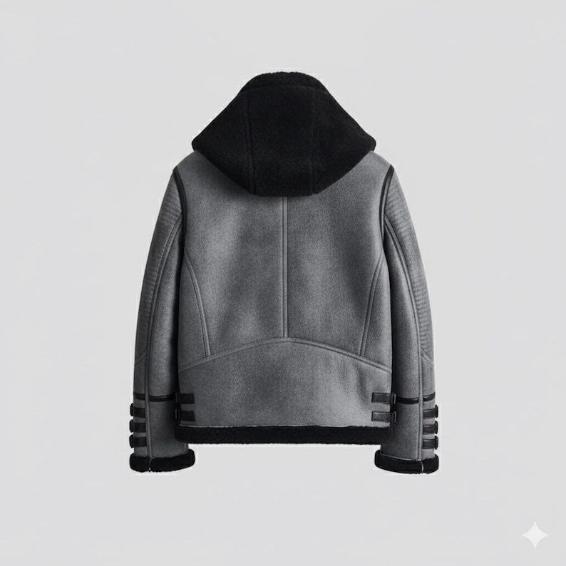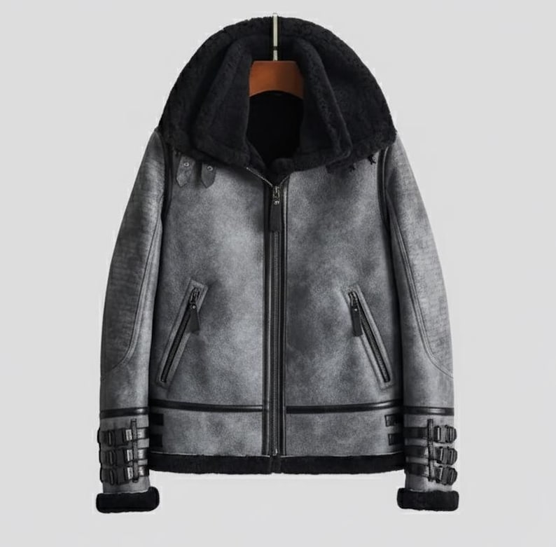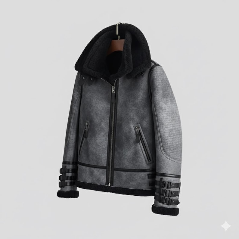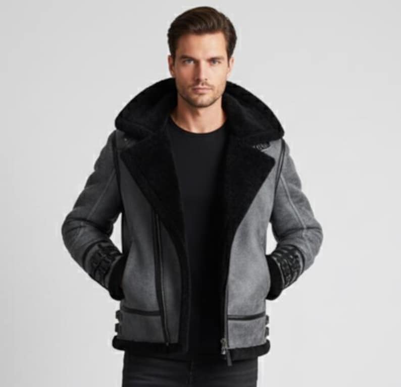 “Stay warm in style with this premium men’s shearling aviator jacket. Designed with a soft faux-shearling interior and a rugged distressed exterior, this hooded winter coat offers the perfect blend of comfort, durability, and standout fashion.