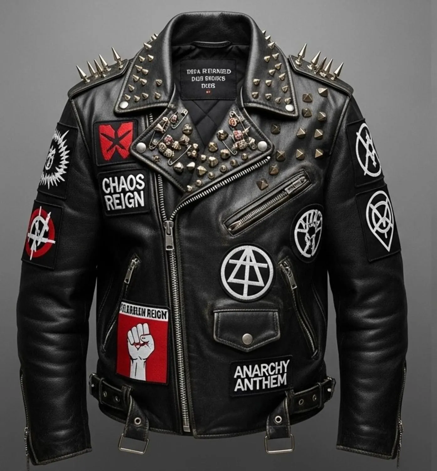 Level up your streetwear style with this handcrafted cowhide leather studded biker jacket, inspired by classic punk, rock, metal, and moto fashion. Made from premium genuine cowhide leather, this jacket features heavy-duty studs, metal spikes, and embroidered patches that create a bold rebellious statement.