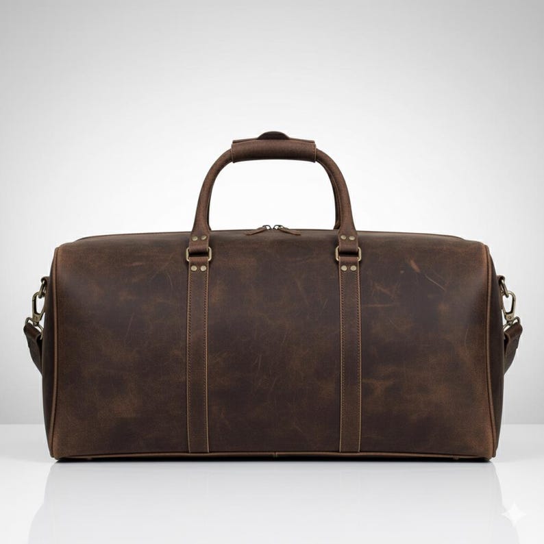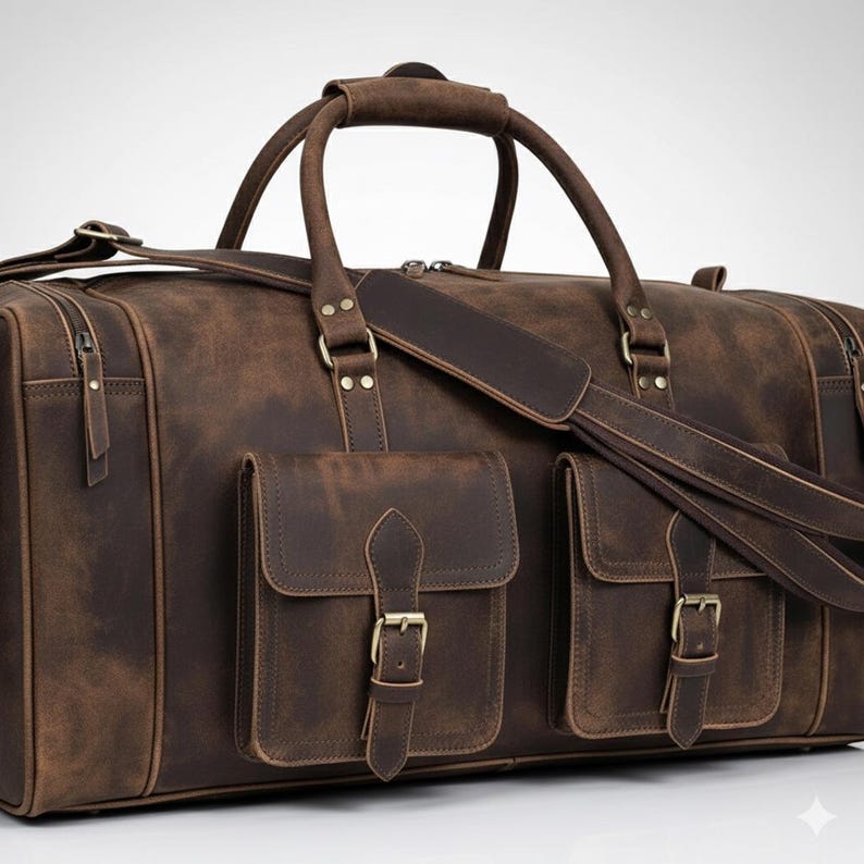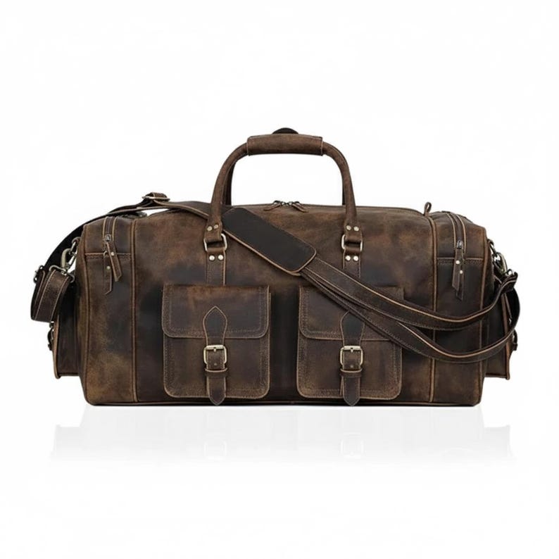 The Vintage Overnight Gym Luggage Leather Bag is a stylish and practical travel companion. Made from high-quality leather. This bag exudes elegance and durability. Its ample interior permits you to carry all your essentials comfortably. This bag combines fashion and functionality seamlessly. This bag fits for everyday wear and all occasions.